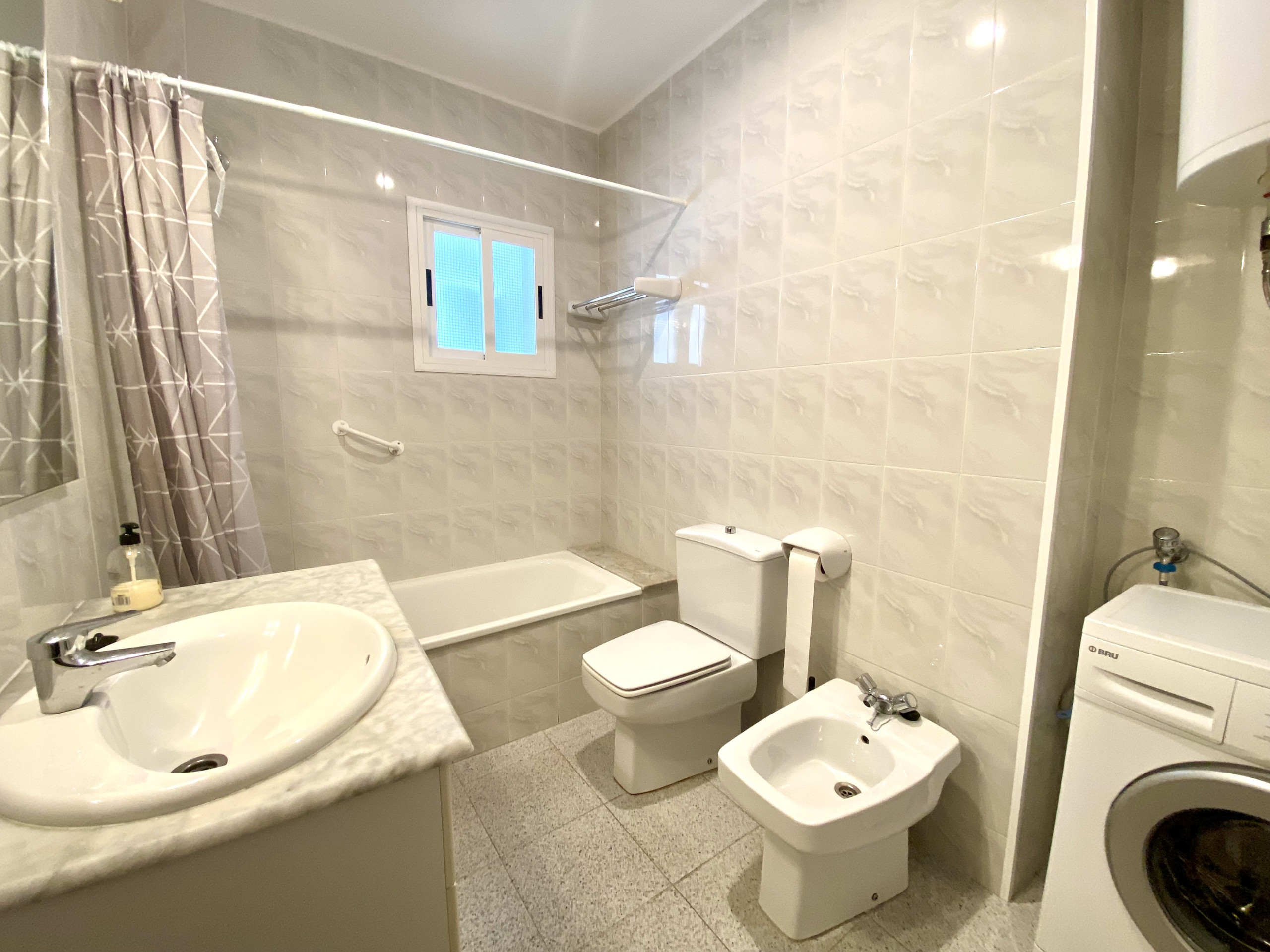 La cuisine est entièrement équipée d'appareils électroménagers modernes, y compris un réfrigérateur, un congélateur, un lave-linge, un four, un micro-ondes, un grille-pain, une cafetière et un presse-agrumes. Elle dispose d'une vaisselle complète pour préparer de délicieux repas en famille. L'appartement fait 90 mètres carrés, offrant des espaces communs spacieux.