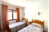 Il se compose de 2 chambres, 1 chambre avec un lit double pour 2 personnes, 1 chambre avec 2 lits simples, salle de séjour, cuisine fermée, salle de bains avec douche. Terrasse. Jardin avec barbecue. Parking.